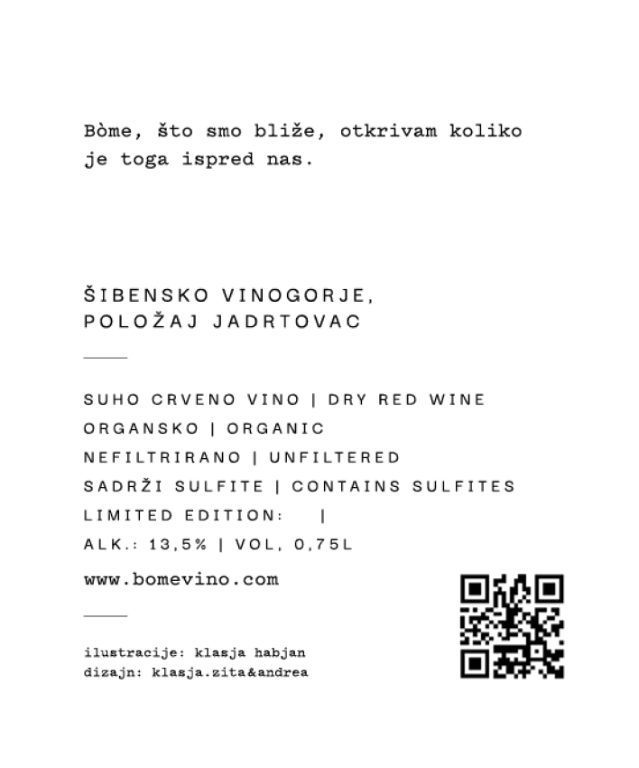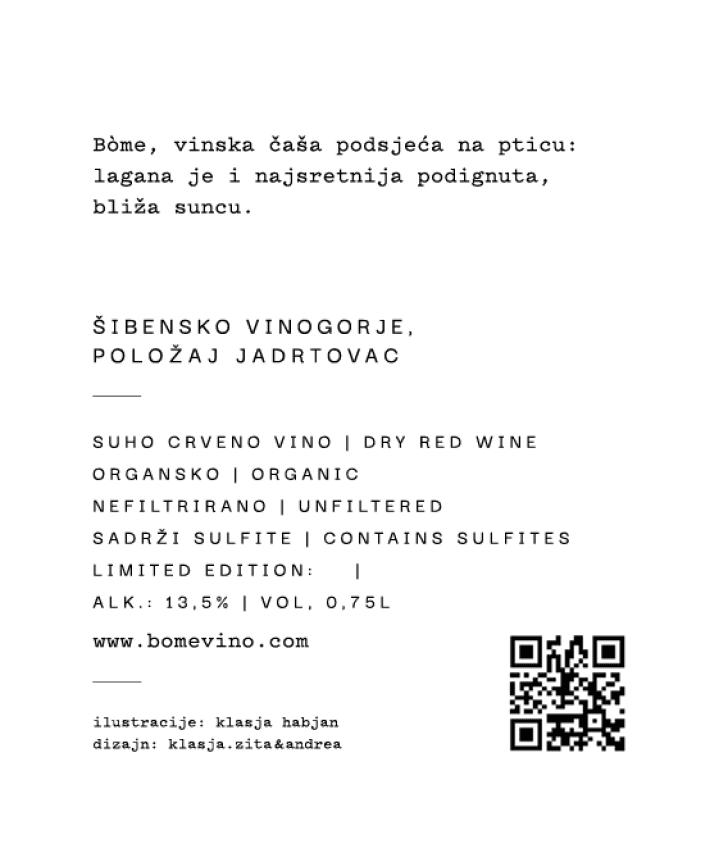 The packaging for Bòme vino was selected as one of the best works exhibited at the Croatian Design Exhibition for 2023/24.